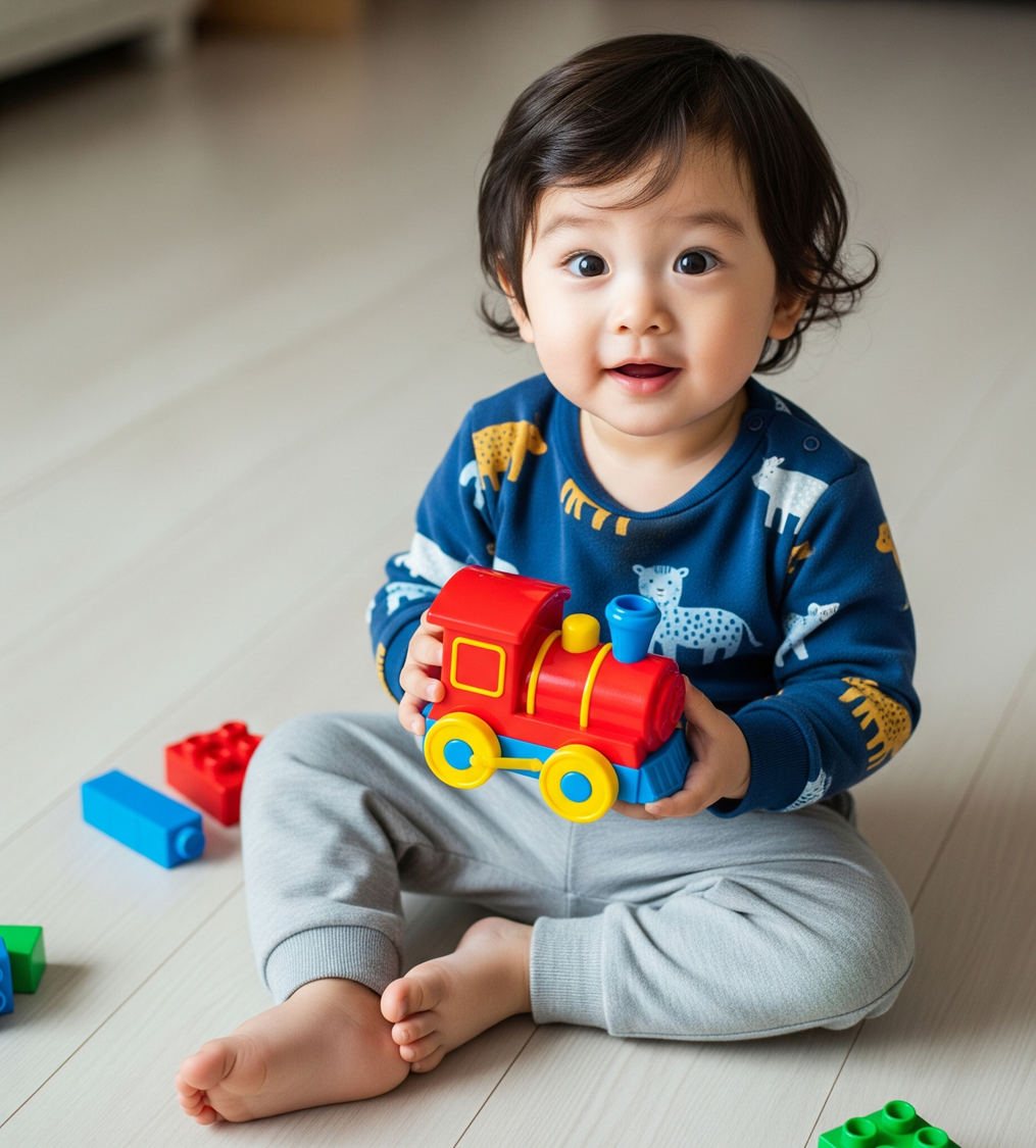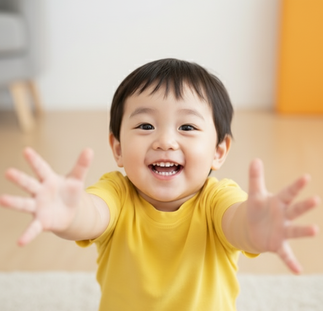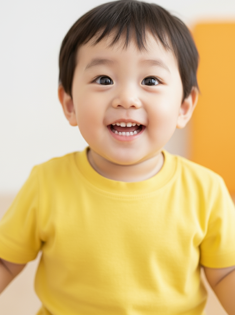 매력: 호기심 가득한 초롱초롱한 눈망울과 통통한 볼살. 천진난만한 웃음이 매력적이며, 장난감, 유아용품 광고에 적합합니다.